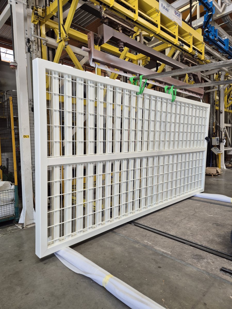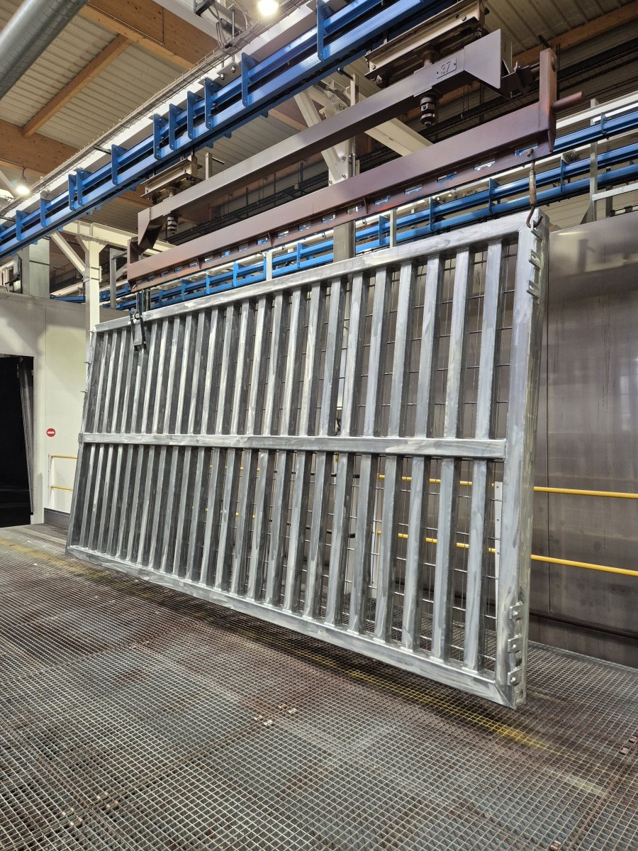 Nous avons récemment réalisé le thermolaquage d’un portail industriel de grande dimension, conçu pour allier robustesse, esthétique et durabilité. Ce chantier illustre parfaitement notre savoir-faire sur des pièces métalliques volumineuses et techniques.