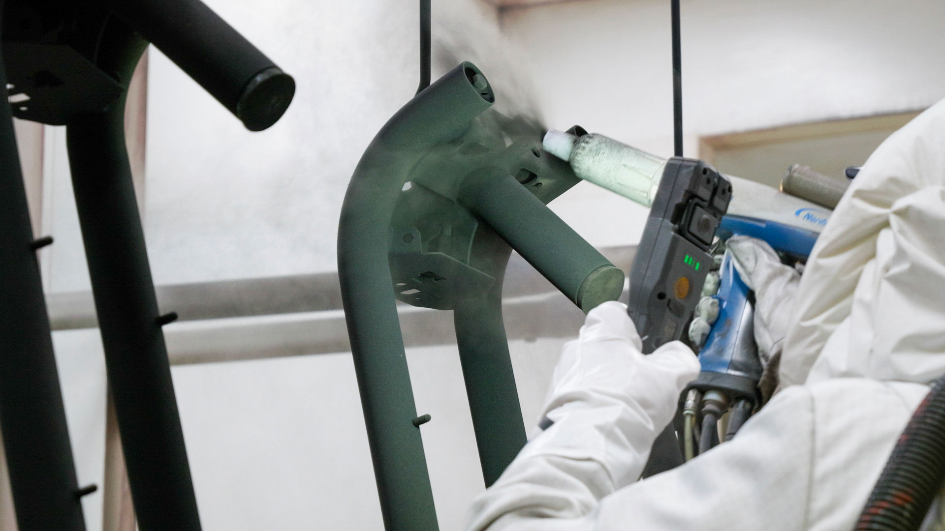 Chaque pièce métallique est soumise à un cycle de traitement rigoureux, combinant préparation chimique, application électrostatique et cuisson haute température, pour garantir une tenue parfaite dans le temps.